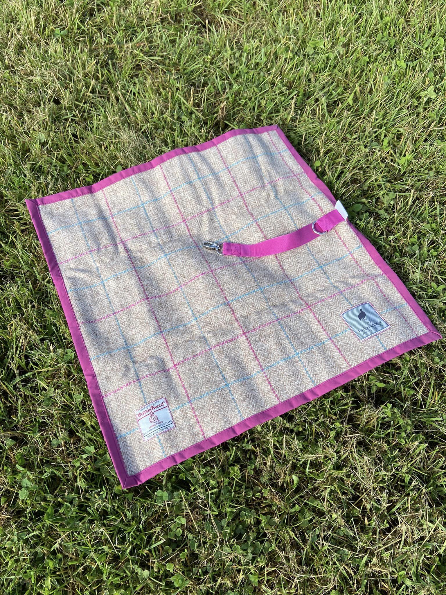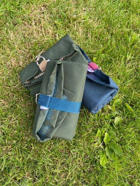 These mats feature waterproof waxed cotton canvas to the base with lovely 100% wool tweed on top. They fold up small enough to fit in a coat pocket or can be clipped onto the side of your rucksack with the fastening clip. Lightweight they are the perfect gift for anyone.