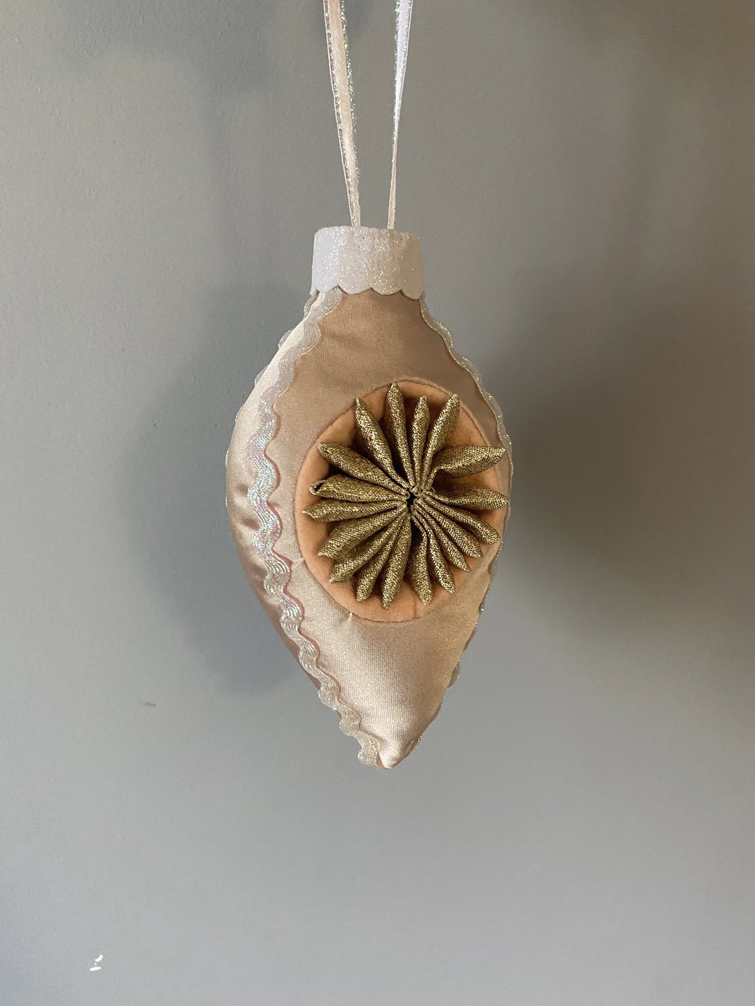 The larger baubles measure approximately 14cm x 7cm plus the ribbon loop.