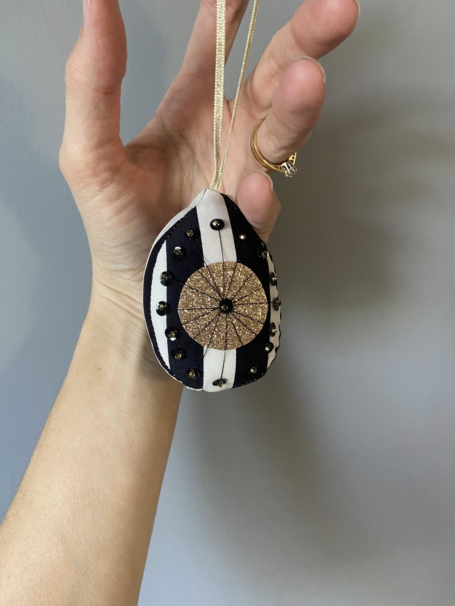 They are made from a mix of luxurious fabrics including Harris tweed, silks, sequin fabrics and glitter trims. The embellishments are all sewn by hand and each one is unique.