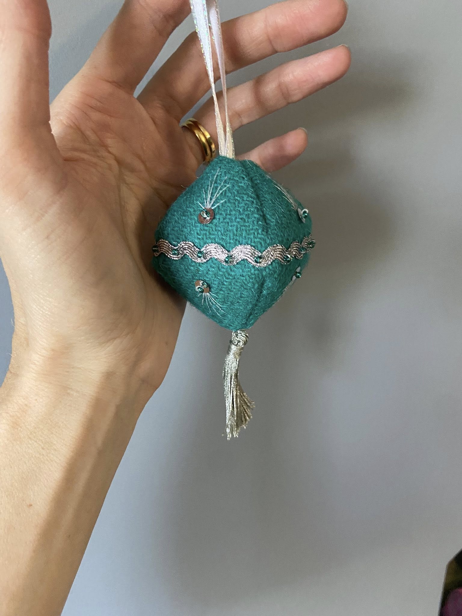The smaller baubles are approximately 8cm x 8cm plus loop and tassels.